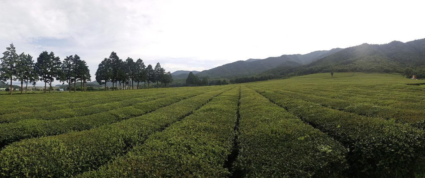 끝없이 펼쳐진 녹차밭과 가을의 조화